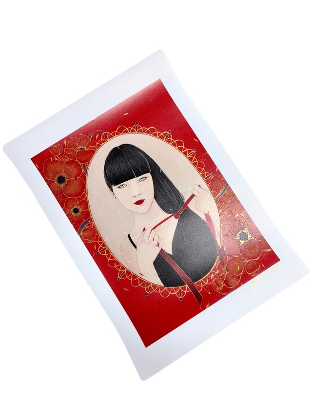 30枚限定✨シルクスクリーンとジークレーのミックス技法 新興グランド社とのコラボA4版画です シルクスクリーンの下刷りで作品に深みを与え、ジークレーで高繊細なグラデーションを再現。 さらに、金地をシルクスクリーンクリアを厚盛することで、光沢感と立体的な輝きを表現しています。 額は付いておりません。 額希望の場合はオプションからお選びください +2000円→¥7500となります。